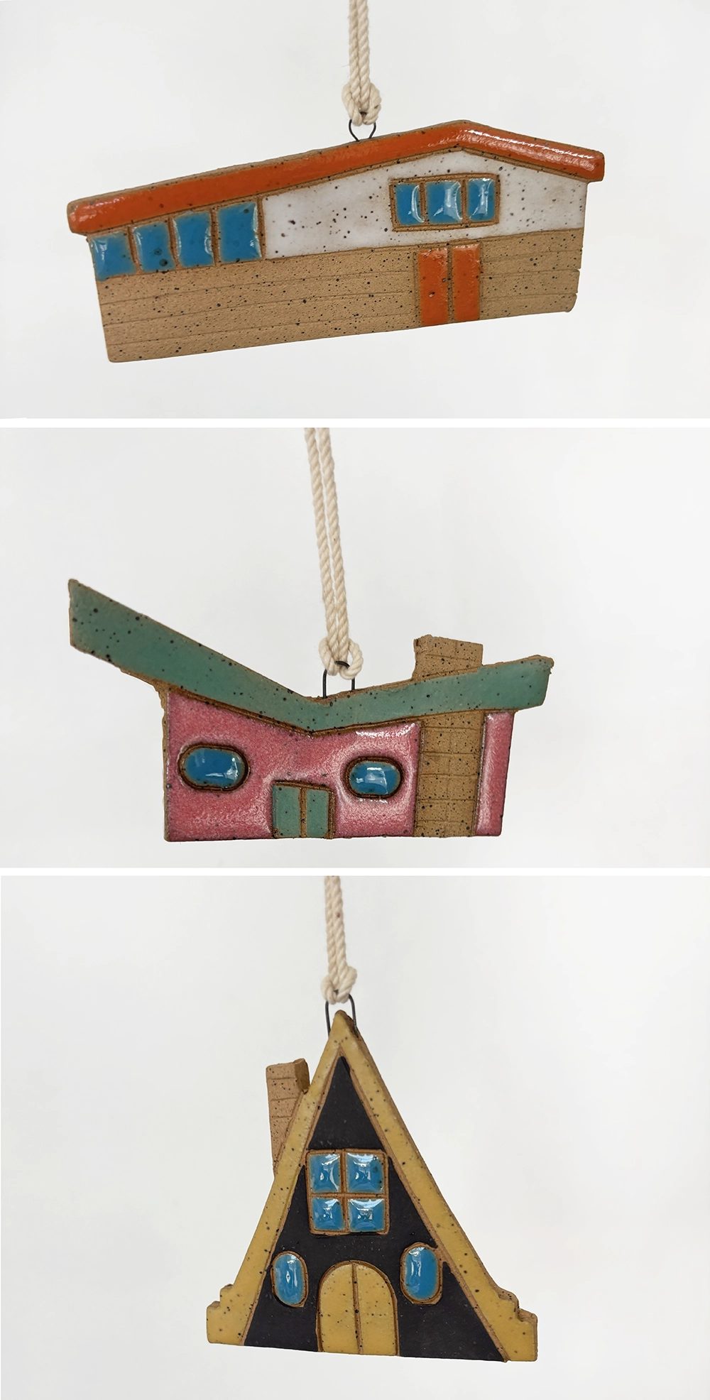 Mid Century Houses Ceramic Ornaments (Set of 3)