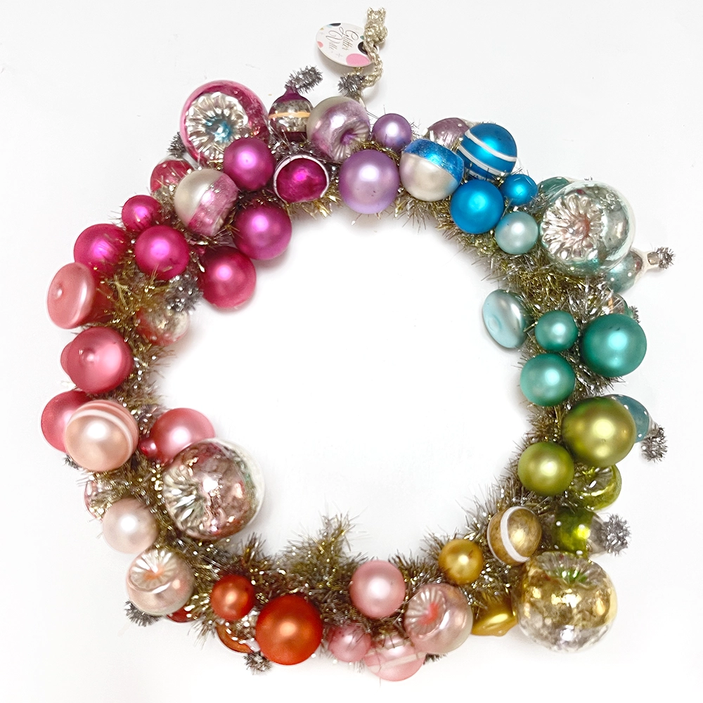 Colorful Mid Century Modern Wreath with Reflector Balls